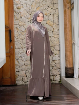 - Dipercantik dengan desain bordir memanjang di bagian atas hingga bawah